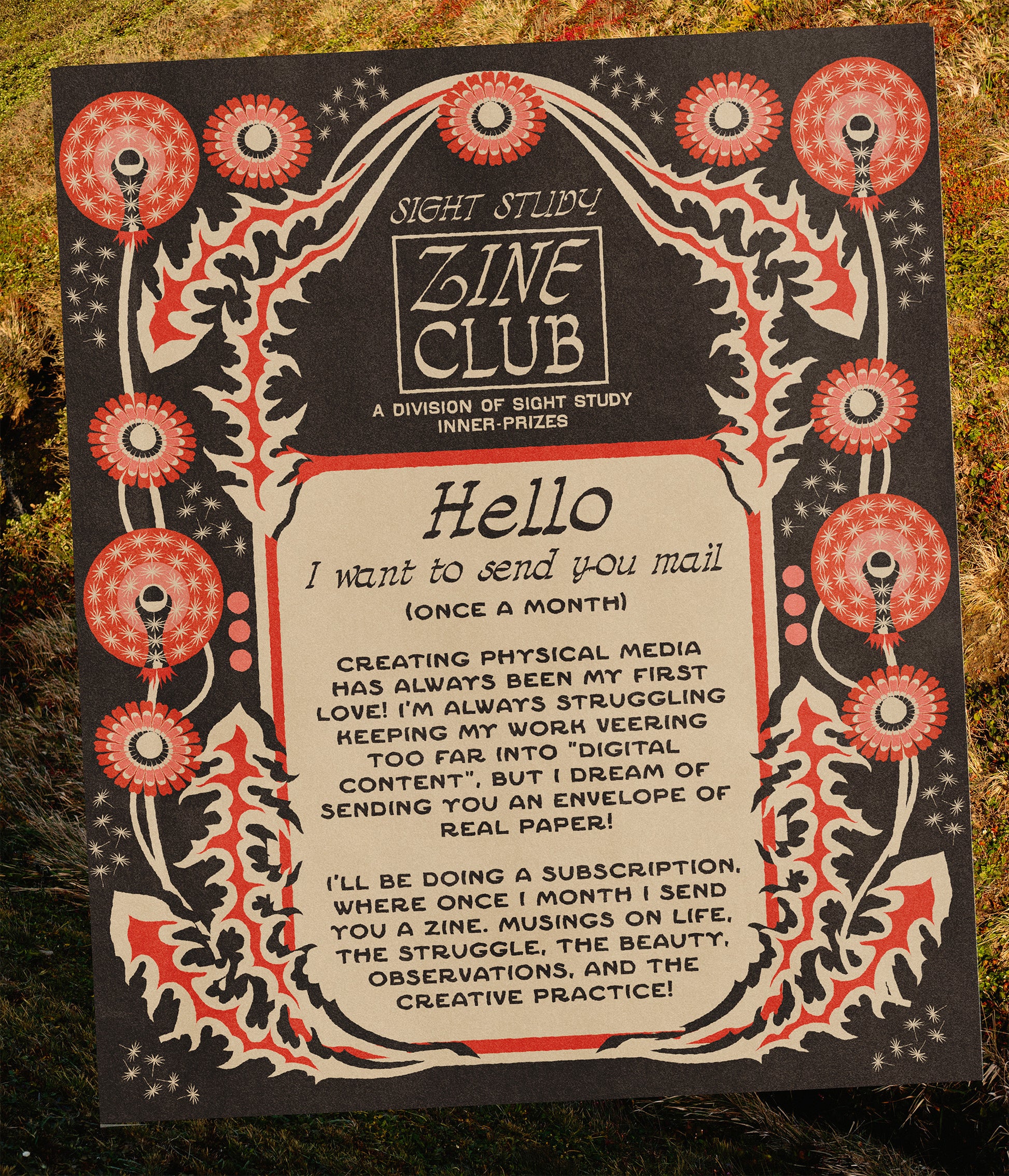 This is a subscription, where once I month I send you a zine. Musings on life, the struggle, the beauty, observations, and the creativity practice!